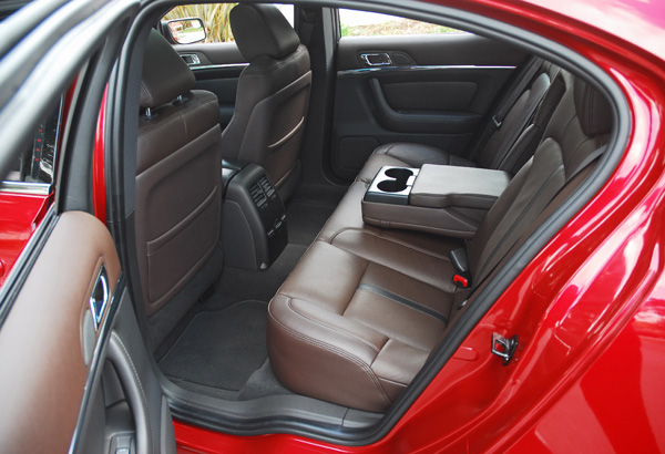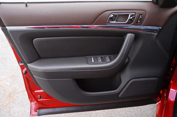 The red candy metallic tined clear-coat paint is a $495.00 option and really sparkles and draws attention to the beautifully detailed and sculpted exterior design of the MKS EcoBoost with its coupe-like profile, split-wing Lincoln signature front fascia with sculpted lens clusters, lower air intake, scalloped hood, deeply raked A-pillars, full-perimeter greenhouse chrome strip, side roof mounted chrome strip, pull-out door handles, flared fenders, deep side extensions, fast rear glass, a short trunk lid with integral lip spoiler, large rear lamp clusters, a bold rear bumper and dual, 3 inch wide, polished stainless steel dual exhaust tips. From any angle, the new MKS EcoBoost speaks sleek, sexy luxury and high-performance.