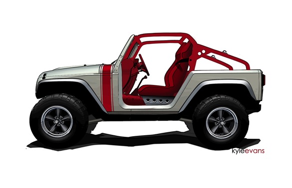 Every year Jeep and Mopar work together to launch concept vehicles at the annual Moab Easter Jeep Safari. Last year we saw eight concepts, ranging from the mild (like the stripped but rugged Wrangler J7) to the wild (like the Jeep Nukizer pickup that everyone, myself included, wants to see in production). This year, Jeep has dialed things back a notch, perhaps because the budget is quite a bit tighter than in years past. Jeep’s leaked two images of Moab vehicles, but I wouldn’t be a bit surprised if they showed up with more at the event. So far, the coolest looking ride is the Pork Chop concept you see above. Ideal for blasting through sandstone canyons in springtime, the Pork Chop would be a bit drafty for winter duty in the Northeast. I’m loving the whole minimalist look, but I’m really digging the Torque Thrust style wheels, which look sick on the bare-bones Jeep. I say throw a bikini top on it and call it done; hell, I’d even give it some serious thought, since it’s not like we get snow in Jacksonville.