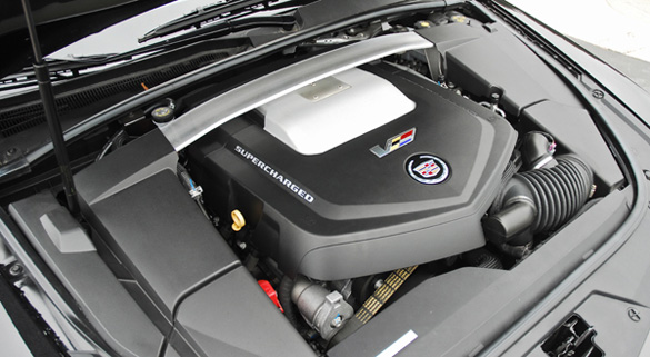 Under the skin is where the real action of this ‘world-class’ supercar takes place. The 6.2 liter supercharged and intercooled V8 engine powers the CTS-V and is rated at 556hp at 6,100rpm and 551lb.ft. of torque at just 3,800rpm. The supercharger starts to force air into the engine at 2,300rpm to increased acceleration. The engine’s Eaton 1.9 liter, Twin Vortices Series supercharger design employs twin four-lobe rotors, twisted 160-degrees. Typical superchargers feature three lobes twisted 60-degrees. The fourth lobe and added twist, when combined with the unique air inlet and outlet ports, create smoother, more efficient airflow into the engine. In addition to improved overall efficiency, this supercharger has superior noise and vibration characteristics compared to more ordinary design.