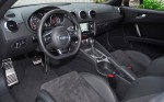 At the rear the classic coupe design is seen with the roofline blending seamlessly into the rear deck, giving the TT an athletic appearance. Integrated LED taillights follow the subtle bodyline. A flat diffuser sits between two, new round chrome exhaust tips while an electronically controlled spoiler deploys at 75mph, or you can manually deploy the spoiler by simply pushing a dash-mounted button.