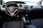 Inside of the all-new 2012 Civic Si is a cabin sometimes invaded with the buzz of the 4-cylinder engine but provides plenty of comfortable space for even tall adults. The front seating positioning is excellent giving the driver good visibility while properly sitting upright in the sport bucket seats. Dashboard controls take a bit to get used to with the tachometer being separated from the mph and information LCD displays. For instance, having the tachometer in the center, but mounted lower than the rest of the cluster, is ideally logical but takes a while to get fully accustomed to. Navigating the information LCD is quite entertaining while at the same time can be cumbersome figuring out if the steering wheel mounted controls will toggle to different screens. Once everything is all figured out, the information LCD screen proves to be somewhat beneficial with the exception of the power meter, which seems to be a gimmick if you are not in full VTEC rpm levels.