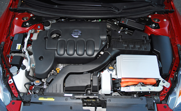 The Altima hybrid powertrain mates a refined version of Nissan’s QR25 2.5 liter 4-cylinder engine and standard electronically controlled CVT (continuously variable transmission) with an