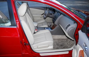 and thick-cut pile carpeting. Options include a rear spoiler, 8-way power driver’s seat, automatic on/off headlamps, leather-wrapped steering wheel with audio controls/cruise-control buttons, wood-tone trim, leather seats/shift knob, front heated seats, Bose AM-FM-CD changer with 9-speakers, MP3/WMA CD-ROM playback capability Radio Data System, speed sensitive volume control, XM satellite radio, heated/power remote, manual folding side mirrors, Homelink Universal transceiver, Bluetooth hands free phone system, auto-dimming rearview mirror, rear AC vents, power moonroof, Nissan Navigation System with TV parking assist, and floor mats.