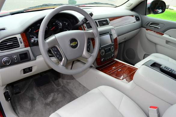 My 2012 Chevrolet Tahoe LTZ test vehicle is at the top of the trim chart. Tahoe’s come in 3 different trims, LS, LT and LTZ. All feature a 5.3-liter V8 engine with 320 horsepower and 335 ft. lbs. of torque. Those numbers may seem small on paper but are modest enough to give the Tahoe the ability to tow up to 8,500 when equipped with the towing package. A Tahoe Hybrid is an excellent alternative for those who wish to better the 15mpg city and 21 mpg highway figures and get up to 20mpg city and 23 mpg highway.