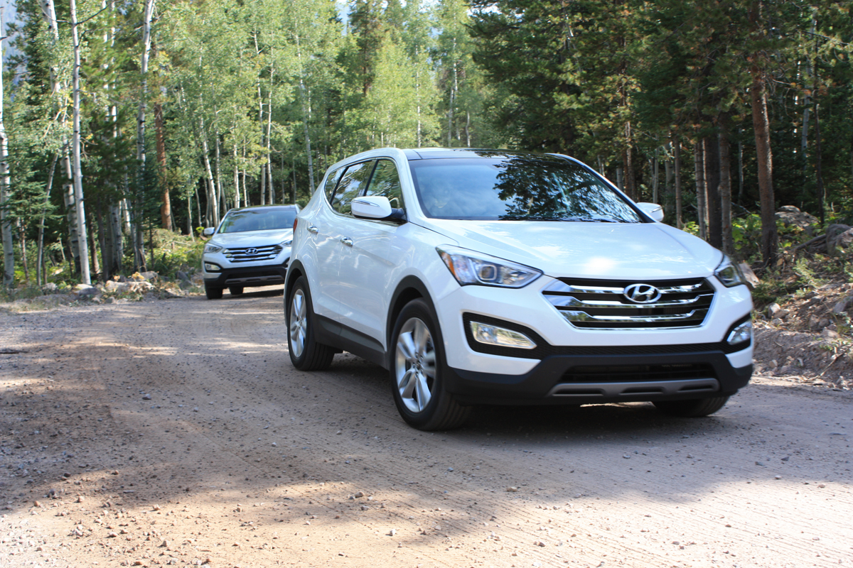 We were also impressed that the AWD Santa Fe Sport comes with features like an electronic differential lock for maximum traction on loose surfaces, and a hill descent control for tackling steep and slippery grades. That doesn’t mean the Santa Fe Sport 2.0T (which comes with 19-inch wheels and 55-series tires) is intended for hard-core off-roading, but it does mean that it will stand up to a winter weekend in the mountains or a summer drive on the beach. Fire roads and easy trails won’t cause much drama, but the lack of skid plates would give us cause for concern if the trail got too rough.