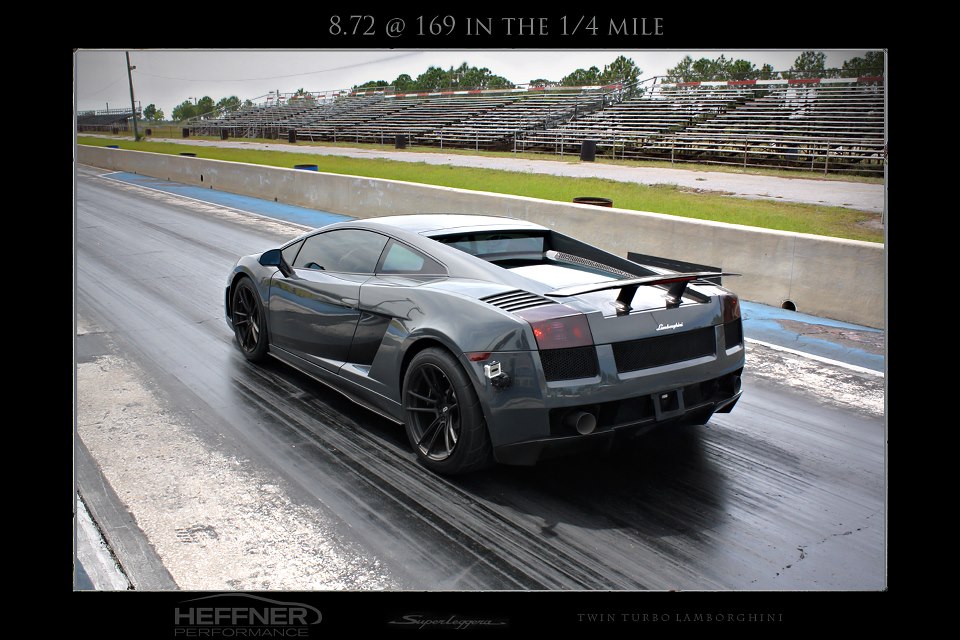 It is almost common-placed to peruse the internet and Youtube for videos featuring ridiculously fast twin-turbo Lamborghinis, especially when it comes to forced-fed Gallardo creations birthed by tuner shops such as Underground Racing and Heffner Performance. One thing that was lacking -was a Lamborghini Gallardo to break 8 seconds in the quarter mile. Usually, running record-breaking quarter mile times is not on the mind of every twin-turbo Lamborghini owner. One exception happens to be a customer of Heffner Performance who had his sights on an 8 second run in his 2008 Gallardo Superleggera.