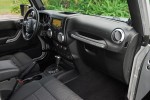 The interior combines rich styling, versatility, comfort and intuitive feature use. Highlights include automatic temperature controls, heated seats, steering wheel controls for vehicle systems, dual cupholders, storage bin and armrest, dual map lights, storage bin above the center stack, variable speed wipers/washers, and thick cut-pile carpeting. The large rear windows are engineered for greater visibility. A USB port connects to the media center, a 12-volt accessory outlet. Standard features in the Rubicon not mentioned above includes A/C, Media Center, 368-watt 7-speaker Infinity sound system with subwoofer, audio jack input for mobile devices, Sirius satellite radio, temperature/compass heading, tilt/leather-wrapped steering wheel, reclining front bucket seats with height-adjustable driver’s seat, giant grab handle above the glove box, rear fold-and-tumble seat, rear compartment covered storage, instrument cluster with chrome rings with more chrome rings around the steering wheel center, switches and dials. Front floor mats round out the new up-level interior.