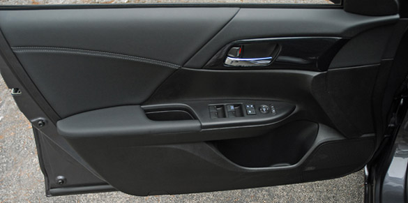 When you put the gear selector in S (Sport) the engine mapping is quickened, the suspension tightens and the power steering is even more responsive giving a feeling and precision of driving a higher-priced, high-performance sport sedan. When entering a highway on a cloverleaf I had the speedometer at 60 mph with no understeer or oversteer, partly thanks to the electronic vehicle assist and traction control that kept the wheels firmly planted as I sped around the circle. Giving the new Accord a quieter ride than ever are standard Active Noise Control and Active Sound Control that counteract engine noise helping to create a more linear and sophisticated high-rpm engine note.