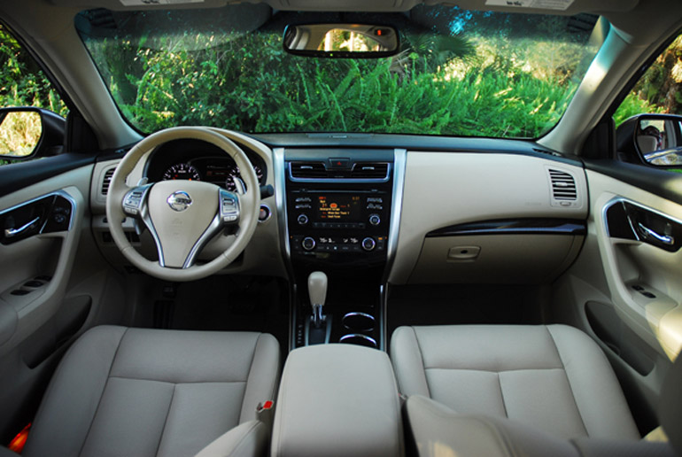 It has a body that while clearly recognizable as an Altima, is lighter, more rigid and cuts a cleaner path through the wind, a 3.5 liter DOHC CVTC, all-aluminum V6 engine that now generates 270 hp at 6,000 rpm and 251 lb.ft. of torque at 4,400 rpm to quickly and securely move you into fast moving freeway traffic and to more easily and safely maneuver around slower city traffic. The new standard 2.5 liter inline 4-cylinder engine is lighter, stronger, quicker and more fuel efficient than before. My SL test Altima came with the 3.5 liter engine and I never wanted to more power on the road or Interstate. The next-generation Xtronic CVT takes Nissan’s two decades of Continuously Variable Transmission leadership into a new dimension of smooth, quiet and fuel efficiency. With the 3.5 liter V6 you can shift manually with the steering column mounted paddle shifters. The new refined independent multi-link rear suspension geometry can be found on many premium European sports sedans. A hybrid power steering system combines the feel of a traditional hydraulic box with the efficiency of modern electric control that is more responsive with the addition of a strut tower brace just behind the engine. The front bucket seats that their inspiration and design from outer space technology for superb comfort and support. An intuitive 3D-effect information display is easier to watch for import information. The armrest is more padded than before for extra-ordinary comfort during long drives. The new windshield wiper design clears more area and with less streaking. The tire pressure monitoring system tells you when you are at the prescribed psi in each tire when you need to add air.