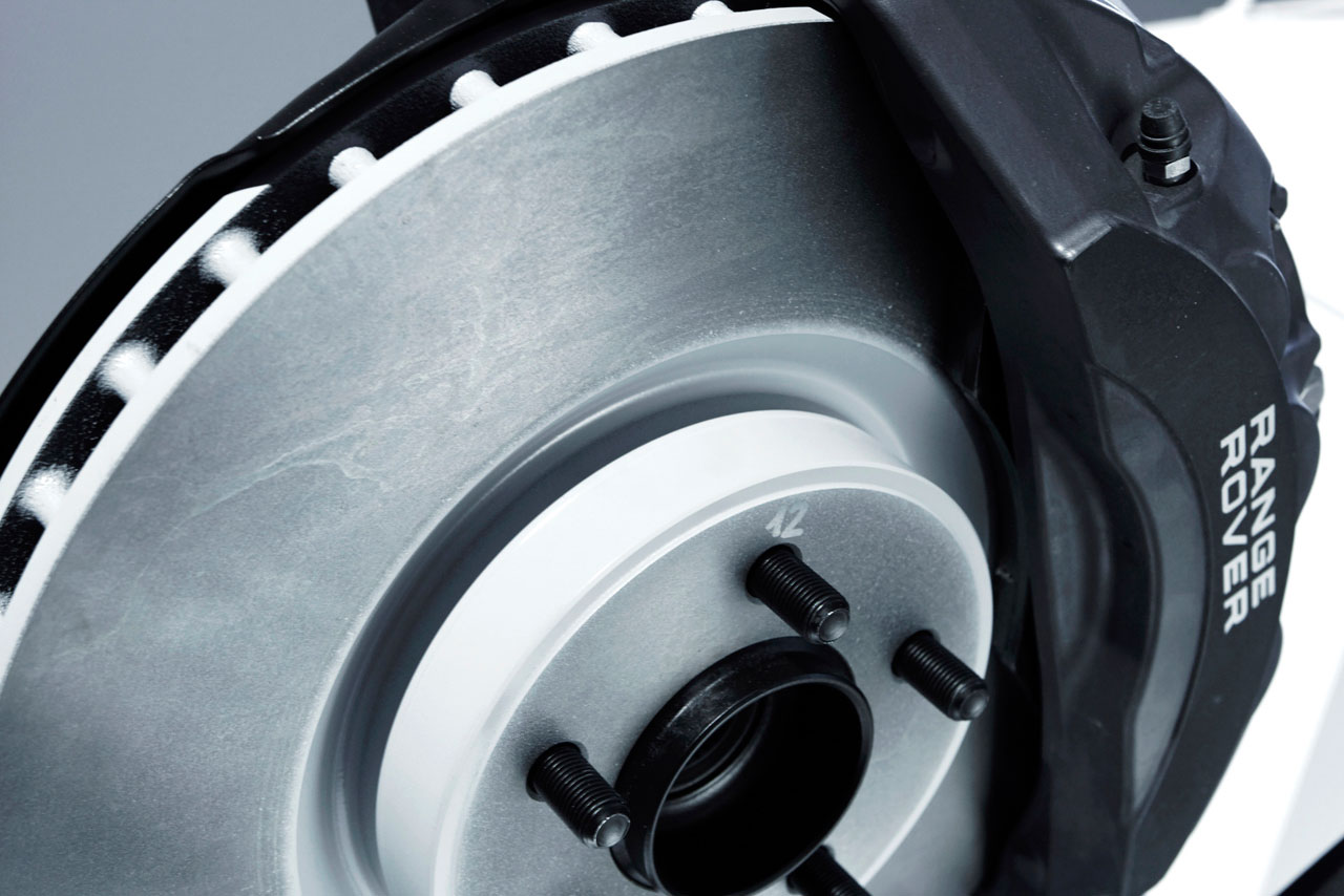 The Range Rover Sport is equipped with a new braking system which has been comprehensively updated to provide enhanced stopping power and improved driver feel.The brakes for the naturally aspirated vehicle are modelled on the 4-piston opposed caliper performance system from the outgoing Supercharged model. The updated system employs 14.2-inch (360mm) ventilated front discs with new twin piston sliding cast-iron calipers for enhanced pedal feel. The rear features 13.8-inch (350mm) ventilated discs with lightweight aluminum single piston sliding calipers.