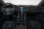 The spacious interior of the SS will comfortably accommodate five adults, with 42 inches of front legroom, and 39 inches of rear legroom. Leather seating surfaces are standard, as are eight-way power adjustable front bucket seats with additional side bolstering that hug the driver and front passenger in tight-handling situations. The SS emblem is prominently stitched onto the soft-touch instrument panel which features two types of chrome finishes – a satin gloss and a bright chrome. At night, the interior is illuminated by ice blue ambient lighting.