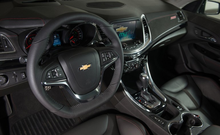 Inside of the new 2014 Chevrolet SS will be a spacious cabin with just as much, or more, legroom than vehicles like the Chrysler 300 and Hyundai Genesis Sedan. The Chevy SS will get exclusive leather seating and many SS embroideries and logos throughout the interior signifying the performance edge of the vehicle. A soft-touch dashboard with a 9-speaker Bose audio system, heads-up display, new safety tech (blind-spot monitoring, lane departure warning), and a new Parking Assist that can parallel and right-angle park will be part of the SS’ edge in tech.