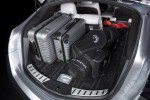 Inside, the ZDX exudes modern luxury while focusing on pampering the front passengers. The cabin is enveloped in leather, which gives the interior a luxurious and inviting feel. The hand-stitched leather dash and instrument panel sweep down to form a dual cockpit layout, creating a personal and intimate experience for the front seat occupants. The premium leather seats are highly bolstered to support the passengers during sporty driving and at the same time provide comfort during a long getaway. A black monochromatic center stack leads to the textured metallic center console, which complements the black and pearl white leather trim. The thick leather wrapped steering wheel provides ample grip and is framed by racing-inspired paddle shifters for the ultimate in driver control. The cabin is enclosed by a panoramic glass roof which runs the entire length of the vehicle, providing occupants with a breathtaking view of the world around them.