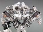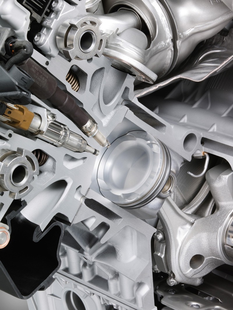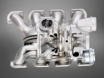 The managed flow of exhaust gas provided by the CCM ensures high-velocity flow of combustion gases. The appropriate separation of exhaust gas flow from different cylinders is maintained until the gas reaches the turbine wheel, spooling the two twin-scroll turbochargers without back-pressure. With maximum boost pressure of 1.5 bar (21 psi), the use of twin-scroll twin turbo technology and the CCM exhaust manifold allows complete exploitation of the benefits of turbocharging.