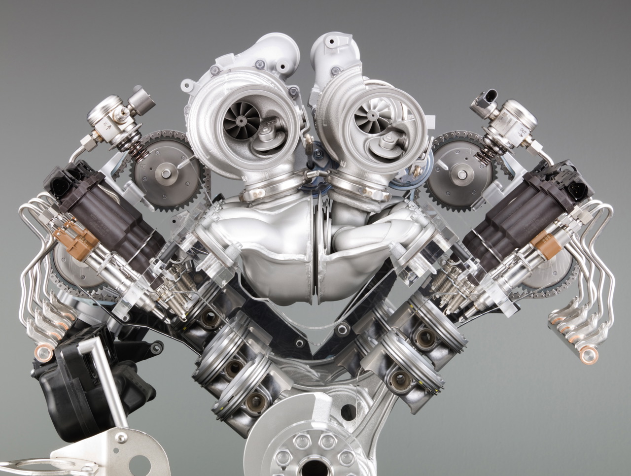 The new twin turbocharged 4.4-liter V8 is truly remarkable. Innovative design and advanced technology at its best. I welcome you to marvel at the images of this new engine and top-mounted exhaust manifold. You just do not see this everyday!