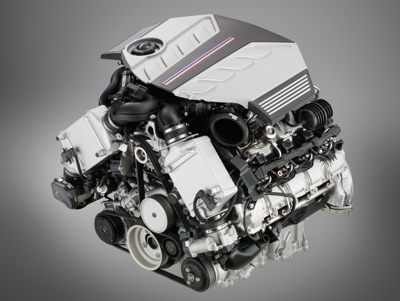 The first modern turbocharged M engine: twin scroll twin turbo technology with a patented exhaust manifold.