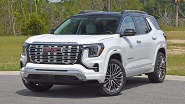 Inside is very inviting with the latest in comfort, convenient, luxury, infotainment and safety systems. I first noticed the soft-touch Jet Black leather which lines the dashboard, dash pad, seats and doors with red contrast stitching. Red accent lighting gives the interior a unique look. More interior detail includes leather-wrapped tilt/telescoping steering wheel with smoked mahogany wood accents, embossed Denali logos on the front seatbacks, smoked mahogany wood trim, Denali illuminated front sill plates, eight-way driver/passenger bucket seats, and a standard sunroof. The power liftgate is programmable so at the touch of a button you can access the vehicle’s 63.9 cu.ft. of cargo space (behind the first row) while a memory function stops the liftgate at a chosen height to help shorter owners or to accommodate low garage heights. Inside options include a color touch navigation system and a rear-seat entertainment system with screens behind the front headrests. The premium interior is influenced by industrial sculpture, with its contrasting stitching and fine materials that create a structured look throughout the cabin. A ‘floating’ center stack is highlighted by warm ambient lighting and houses ergonomic comfort and convenience controls. The standard and segment-exclusive Multi-Flex sliding rear seat can be moved fore or aft nearly eight inches providing increased passenger comfort or great cargo capacity, while the 60/40-split rear seatback offers additional configurations for passengers and cargo. It also features a pull-down armrest with dual cupholders. The rear cargo area offers 31.6 cu.ft. of storage, as well as one of the Terrain’s four auxiliary power outlets.