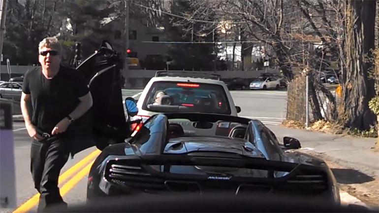 At some time or another you are lucky enough to see some bizarre stuff on the roads we travel. The latest bizarre sighting on the road happens to involve a new McLaren MP4-12C Spyder piloted by someone on who really has go. When I say go, this guy has to relieve himself – but does it like he has no care in the world – on the side of the street while holding up traffic. To put icing on the cake, he seems to have trouble getting the MP4-12C into gear while feeling it necessary to give the person behind him (filming him) a middle finger gesture. Wow, this is one peculiar sighting! Maybe he was drunk. Enjoy!