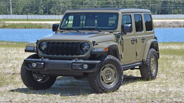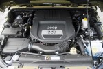 New for the 2013 model year Unlimited Sahara includes new front and rear seats that are re-contoured with larger side bolsters offering more comfort for long drives and more support for sporting off-road activities. There is also a new release handle for the rear seat fold-down function that only needs one hand for greater convenience. The interior courtesy lighting is now found under the instrument panel as well as the cup holder areas for front and rear passengers. An auto-dimming electro-chromatic rearview mirror is standard and features LED map lights up front. A new Alpine premium speaker system is standard. The optional navigation system features a 6.5 inch touch screen display. My test model came equipped with the three-piece hard top but new for 2013 is a revised soft top that is easier to raise and lower, especially when operated by one person. Also new this year is new wheels-18X8 inch five-hole alloy wheels with a polished lip and sparkle silver paint inner face. These new stunning wheels are wrapped with 255/70R18 inch Bridgestone Dueler tires and each wheel also features a stenciled ‘Wrangler’ silhouette graphic in gray. My test model came covered in the new Commando Green paint scheme which really got positive remarks from other drivers. All Wranglers now feature dual windshield washer nozzels to help better clear away mud and dirt from the windshield.