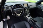 The front seats of the Genesis Coupe 3.8 Track are remarkable for a track day and prove to provide enough comfort for long trips. The bolstering is ample while the low back possibly gets shortened due to the low-slung roofline. The rear seating area is a bit tight with a major disappointment in headroom. Be sure to never stick any of your “tall” friends in the back unless they do not mind a roofliner massage or alternative hair makeover. The steering wheel shifter paddles, among the full list of standard features of the Genesis Coupe 3.8 Track, come of as a bit cheesy and cheap after hearing the plastic creeping noises just before you are greeted with snappy shifts of the 8-speed automatic transmission. I would say managing 8 gears is just a bit baffling, unless you like the idea of playing games with the computer to see how far you can upshift without divine intervention from the transmission ECU gods. However, the transmission’s sport mode does great to select the proper gear and keep engine humming in its sweet spot sans your forthcoming headache.