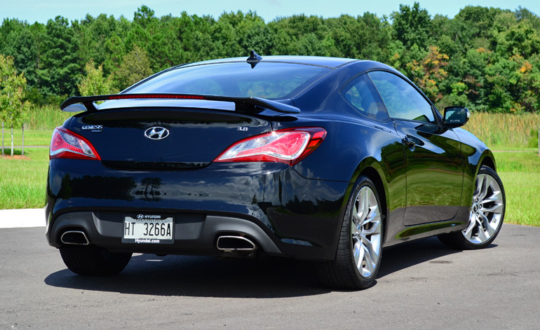 The ride quality of the new Genesis Coupe 3.8 Track is firm enough as to not give away its front-end heavy balance. There is, however, a subtle reverberation of the dampers on light bumps. The appealing look of the Genesis Coupe’s stance pays homage to a customized or lowered sports coupe by limiting wheel gap between the finders and tires. More of its sporty appeal wraps around the wide front bumper, rear spoiler and chrome-tipped exhaust outlets within the rear bumper.
