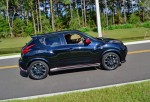 Road handling for the new Juke Nismo becomes a bit more crisp and predictable over other trims as it has sport suspension, a lowered ride height and sticker summer 18-inch tires wrapping aluminum-alloy wheels painted with a charcoal-bluish-tinted color. Ride comfort can be a somewhat dodgy at times where the stiffened sport suspension emits a slight rebounding bounce over light bumps in the road. The suspension does adapt well to throwing the little Juke Nismo around and surprisingly handles pretty well for being a compact crossover, or hatchback – however you want to slice it.