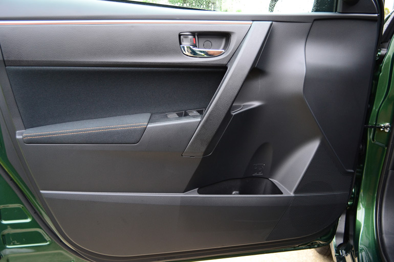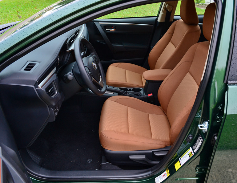 Adding to the appeal of larger interior dimensions is a nicely revamped dashboard with a surprising excellent perception of fit and finish, especially for this segment. The new dashboard somewhat pays homage to the older style of Toyota’s many generations ago but the accents and trim colors all come together nicely with a modern touch. Many controls have large dials and are all easily accessed, even within the stereo and connectivity system’s infotainment LCD touch-screen menus. Furthermore, the new Corolla’s color options are mixed with nicely accented selections, such as the tan colored cloth seats paired to the dark flooring while accent stitching the color of the seats are found on the door trim. All of the accents accumulate in a nice fashion to add a premium perception to the new 2014 Corolla’s interior.
