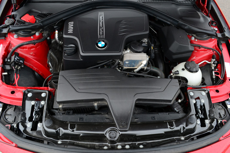 The new 2014 BMW 428i gets a decent powerplant for the start of the 4 Series line featuring a 2.0-liter direct injection turbocharged inline-4-cylinder producing 241 horsepower at 5,500 rpm and 258 lb-ft. of torque as low as 1,250 rpm. The power delivery, at the cost of a callous audible note, is linear through the band with a nice pull but somewhat diminishing at about 6,600 rpm till redline and fuel cut at 7,000 rpm. Power is directed to the rear wheels through a new ZF-sourced 8-speed automatic transmission that exhibits lightning-fast shifting and very minimal use of the torque converter to mimic the snappy shifts and direct connection of a dual-clutch transmission. The new 8-speed automatic is the fastest and most responsive of any automatic transmission with 8 forward gears I have experienced. Even the ECU mapping of the transmission controller is a gem in that it never wastes time hunting for the proper gear or limits your steering-wheel-mounted shifter paddle inputs when reaching the limitations of the RPM band. Basically, it lets you bury the RPM needle right next to redline in its perfectly executed rev-matched downshifts. Additionally, in full Sport+ mode the transmission will let the rpms fly up to fuel cut giving the driver unadulterated control. The direct connection of the 8-speed automatic aides in the direct-injection twin-scroll turbocharged 2.0-liter 4-cylinder engine to get 35 mpg on the highway and 23 mpg in the city. These figures were easily attainable and on the highway I was able to better the EPA figure to get a nice 36.4 mpg at highway speed limits.