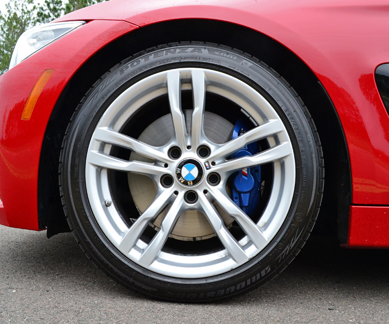 Even though the new 2014 BMW 428i M Sport Package is focused more on being an enthusiast-oriented driving machine, the handling limits can be found in subtle hints when the rear end is broken loose due to the lack of a limited slip differential. The new 428i gets an open differential, which takes an extra bit of effort to allow the rear to communicate to the driver at times when dynamic stability control is disabled. Of course, the DSC handling dynamic mode allows you to slip the rear out for a second or two before the system clamps the rear brake calipers down on the large rotors and saps your throttle input for a quick moment acting as your proactive safety blanket. Nevertheless, the lack of a limited slip diff does not take away from the 428i’s astonishing handling capabilities. Apart from this slight shortcoming, the new BMW 428i is a well-planted vehicle able to tackle just about every road-going obstacle you can throw at it with confidence to spare. This is evident in the almost perfect 50/50 front-rear weight balance, an enthusiast-sought-after characteristic that BMW has prided themselves for pioneering on road cars for many decades now.