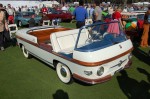 Since the Concours has themes, you get to see very different cars each year. This year they had racing Corvettes and also some cute little beachy runabouts. I don’t know how many of the runabouts were one offs, but there were a couple I had never seen before. The most fascinating one was built from a Fiat Metroplex, had wood slat seating in the back and was used out in California on Lake Arrowhead at someone’s lake house – it even had the original Lake Arrowhead stickers on the windshield.