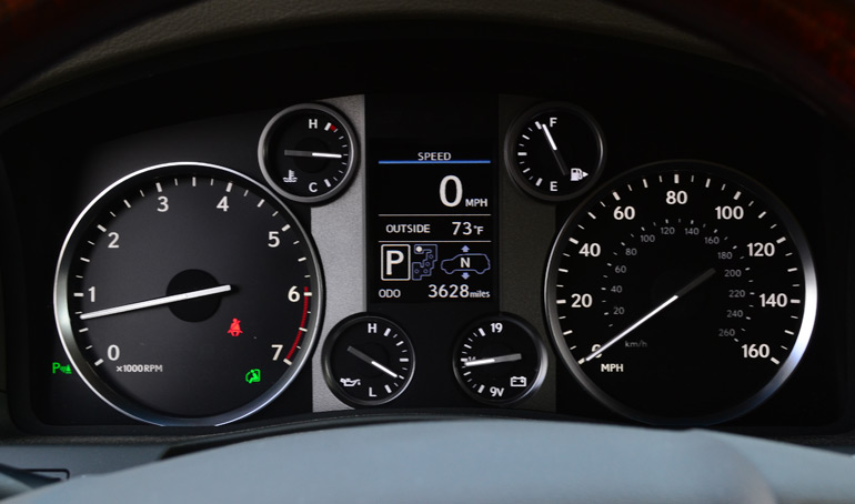 Speaking of excess, the 2014 Lexus LX 570 is a thirsty vehicle, and there really is no way around it even if you practice hypermilling as a religion. The 5.7-liter V8 with its 24.6 gallon tank full of premium unleaded fuel is quickly depleted, as you will expect to get about 16 mpg at best with a full load of 8 passengers on the highway. The EPA estimated 12 mpg city and 17 mpg highway is mostly dead-on for what you will get in the real world situations without a full load. I was able to muster out at best 20.6 mpg on the highway around a constant 65 mph all on a level surface and toting around 2 additional passengers. That figure quickly diminished to about 17.1 mpg when approaching 70 mph. Anything over 70 mph you may want to program the nearest gas station into the navigation system or you could expect to reach your range limit in under 300 miles. Moreover, around town don’t be too shocked to hit mpg figures as low as 10.5 mpg, which I saw in constant stop-and-go traffic. Ultimately, if you lay down close to $90K on this plush mammoth SUV, you’re not too concerned about fuel consumption. That’s why Lexus also offers gas-sipping hybrids, a little something for everyone.