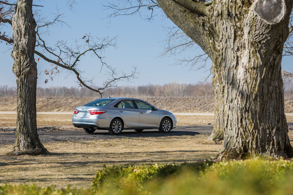 The 2015 Camry’s exterior is more expressive and athletic with prominent character lines. The new car is slightly longer (1.8 inches or 45 mm) and features a widened track (0.4 inches or 10 mm) that communicates a dynamic stance and presence.