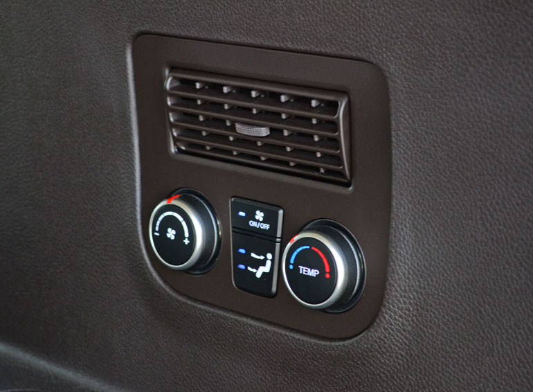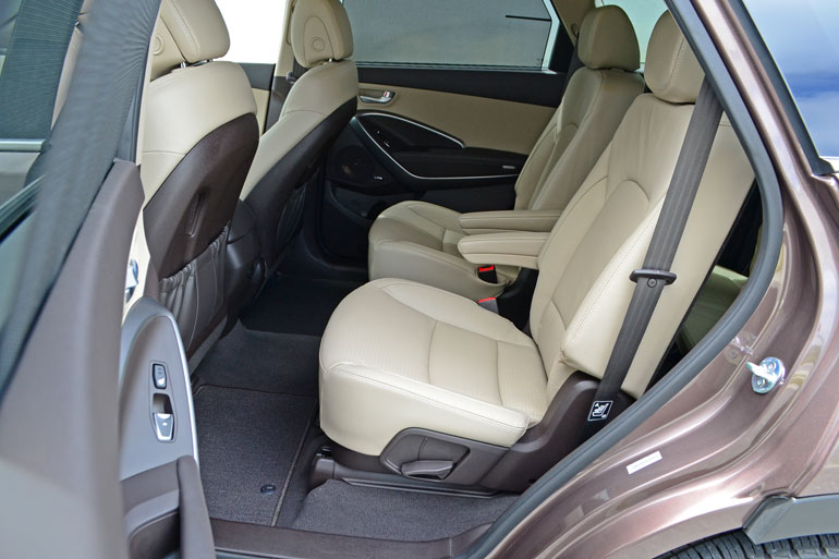 Interior appointments for the Hyundai Santa Fe Limited are endearingly plush but not overly done. The cabin is still somewhat reserved with a good amount of soft-touch plastics, limited simulated wood trim and lots of padded dash real-estate. Front seats are comfortable on long hauls and provide just enough support for the Santa Fe’s character. The middle row, exclusively incorporating two captain’s chairs for the Santa Fe Limited trim, is almost as comfy as the front seats, especially including a heated option on my test vehicle. The 3rd row seating is plentiful for two adults by means of the 50/50 split folding seats. 3rd row occupants get their own analog climate controls while the 2nd row gets a set of adjustable vents.