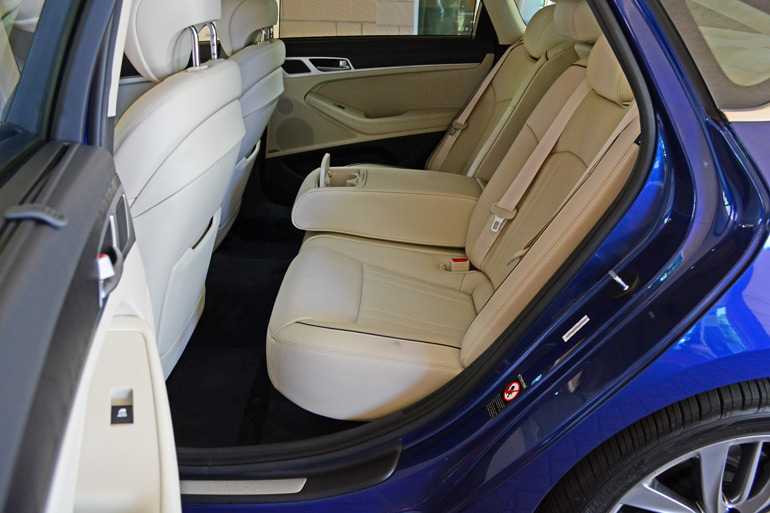 Hyundai opened up the entry-level 3.8 trims to most available options and luxury amenities across the new Genesis Sedan line with the exception of the few exclusive 5.0-liter features, such as LED fog lamps, quad exhaust tips, illuminated door sill plates, and 19-inch alloy wheels wrapped in staggered 245/40R19 front and 275/35R19 rear tires.