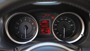 Inside the new EVO MR shows a new international flair. The instrument panel is straight-ahead and easy to see and understand with a 180mph speedometer and 9,000rpm tachometer, the metal pedals add another racecar styling cue, a Driver Information Screen shows all of the important system information easily scrolled through by pushing the Info button. A wide and tasteful black plastic strip runs the length of the dashboard into the door trim to breakup the solid black material. An aluminum strip mounted on top of the center stack that also rings around the two large gauges, and chrome accents at each of the four air-vents, all add up to a more sporty look.