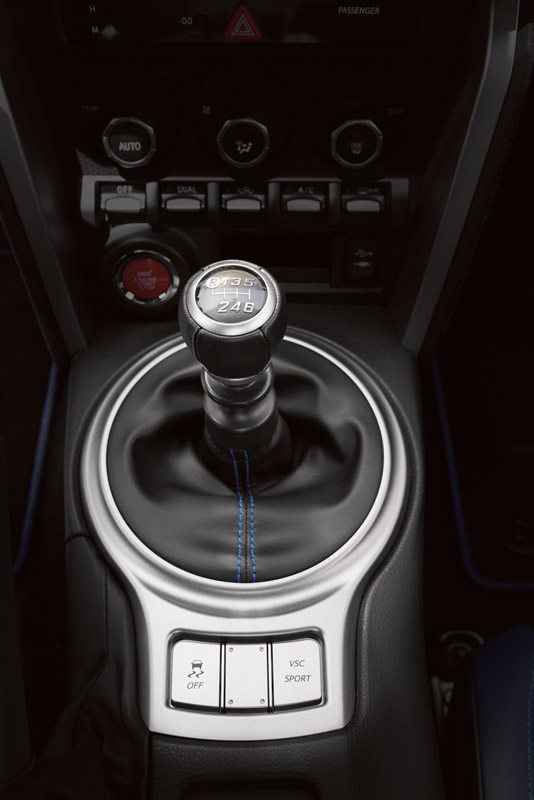 Blue stitching accents the seats and the blue and black leather-wrapped steering wheel, as well as the shift lever boot and leather-wrapped parking brake handle. The blue motif carries to the center console kneepads and door trim, accented by an embroidered silver BRZ logo on the front seatbacks. Carpeted floor mats pick up the BRZ logo and blue stitching, as well. The 2015 BRZ Blue.Series 6MT starts at $29,490.