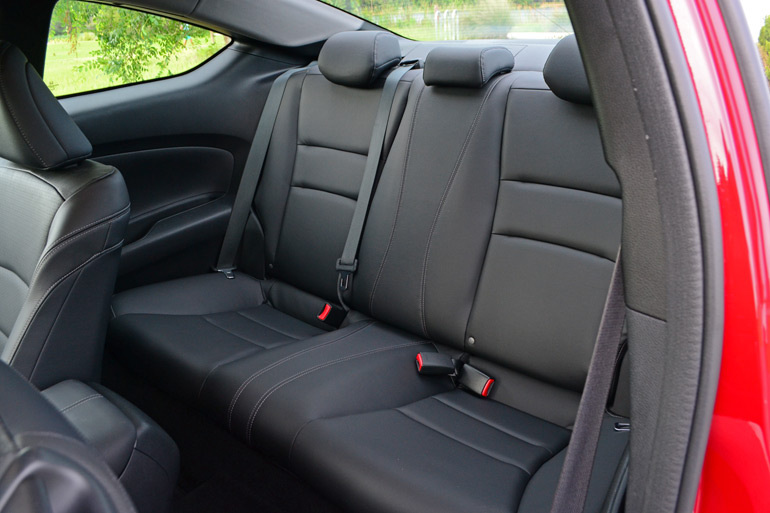 The seating positions up front come with a lot of adjustability whereas the driver’s seat takes a good while to find a proper driving position. At times the seating position feels a bit out of place due to the rather wide range of adjustability, mostly in the height of the power driver’s seat. The takeaway from this is that the Accord Coupe is friendly to virtually any sized adult. Probably something football players could take a liking to for the extra adjustability. The passenger seat, initially, is more ideally positioned with its manual control. The rear seating of the Honda Accord Coupe departs far from its Sedan sibling with a space that is mostly cut short and can be a hassle for those with long legs. Most of the space is usable for adults, but most of the legroom is solely ridding on the positioning of the front seats where space can be plentiful or mostly diminished all dependent on your front passenger’s “adjustment” situation. Cargo space, at 13.4 cubic feet, is only a couple inches short of the Sedans 15.8 cubic feet, as it is expected to be. The one-piece folding seat back folds down to open up cargo additional space and an added versatility to the Accord Coupe. It all comes together well considering its initial expectations of being cramped, which it is not.