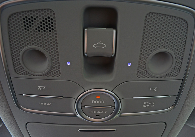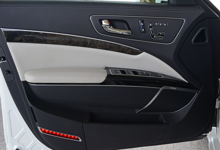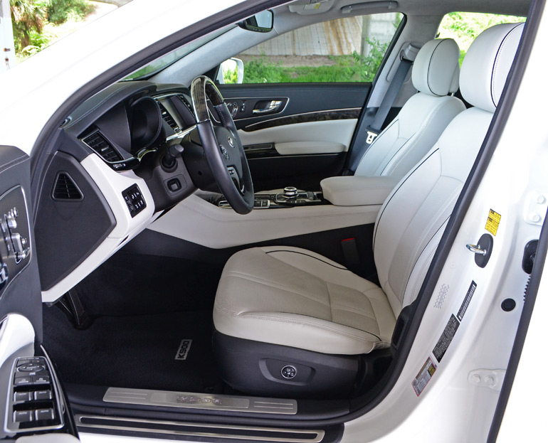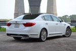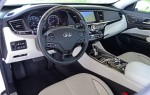 For the American market, the 2015 Kia K900 gets the 5.0-liter V8 direct-injection engine with 420 horsepower and 376 lb-ft of torque mated to an 8-speed automatic transmission as the top-level V8 trim engine choice. A 3.8-liter V6 engine with 311 horsepower and 295 lb-ft of torque gets the job done for the base V6 model with slightly better fuel economy numbers (18 mpg city/27 mpg highway). The V8 engine in my test vehicle provides a substantial amount of power through the rear wheels and the transmission consistently keeps things progressive without any noticeable delays in shifting up or down. Ride quality and handling have a nice balance but more on the soft and supple side as the conventional springs and amplitude-selective Sachs shocks do a decent job keeping the body motion in check. Though, the K900 does get a bit lofty on rolling roads and big dips, potentially an area where an adaptive damper setup may have helped reduced the bounce. Areas such as the suspension, swaying way from an air or fully adaptive setup, are evident of the cost savings in the K900 and one of a few shortcomings against its competition. Still, the Kia K900 is buttery smooth and absorbs bumps and pavement imperfections like an infinitely hollow sponge. The only time where the K900 shows its heft is when you push it to into turns at endearing speeds, something that most drivers will probably never do unless in an emergency situation. The 4,555 pound curb weight comes into play at those times and can be an enlightened situation where the driver is at the mercy of stability control, yet it does remain well-planted on the road with the ability to push 0.84 g on the skid pad.