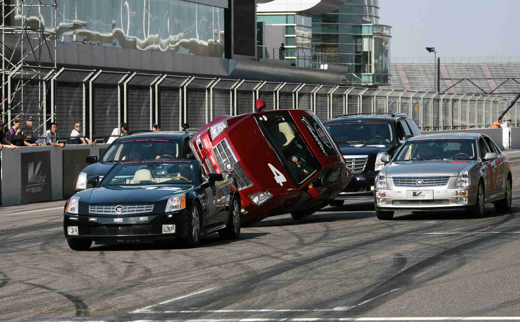 Celebrating the recent arrival of the Cadillac CTS-V in China, a commemorate event at the F1 circuit in Shanghai was held where stunt drivers put on one of the wildest shows around. In the show was, obviously, Cadillac CTS-V’s being driven by some very good drivers.