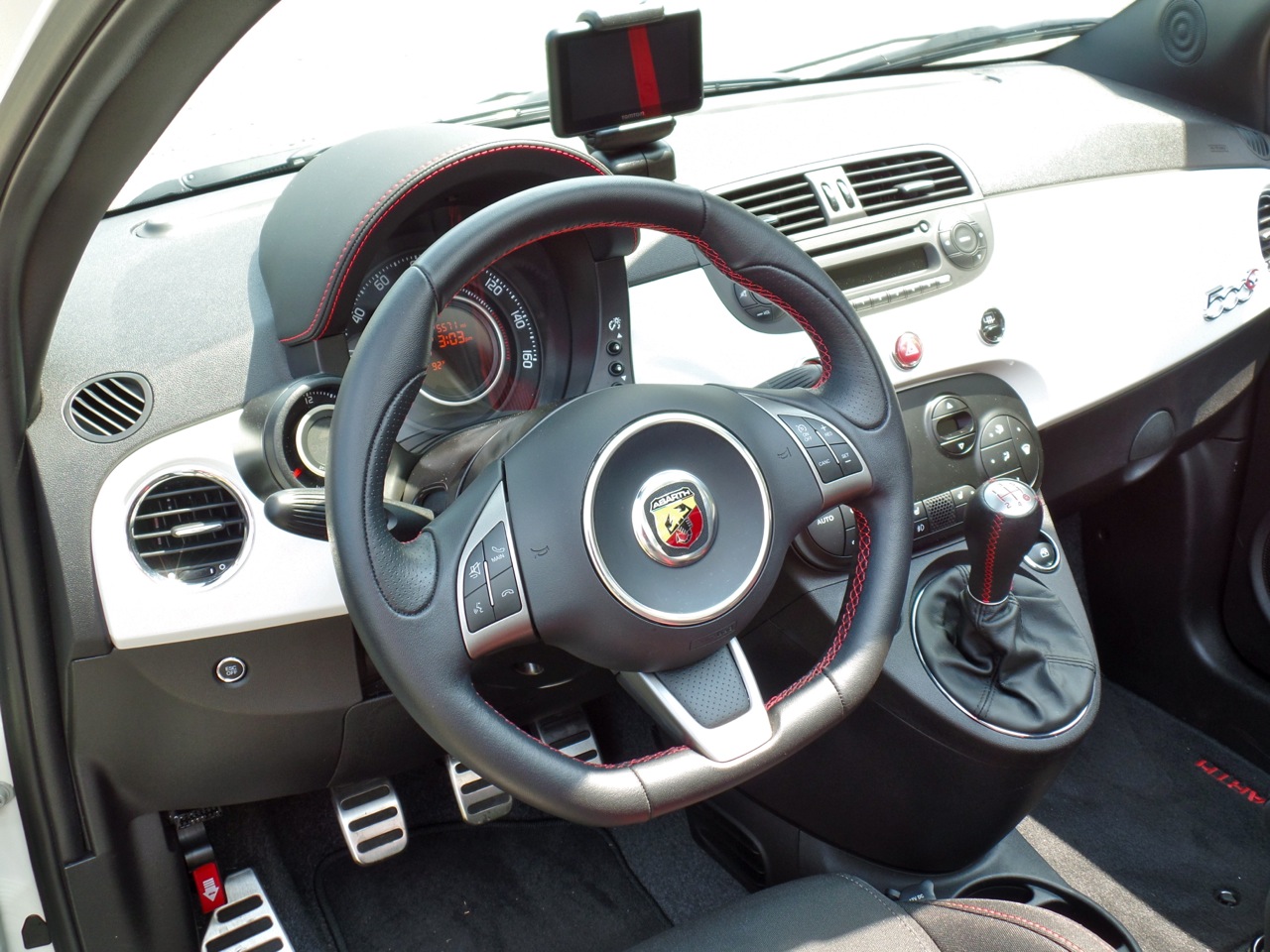 Highway driving is less exciting, but better than I expected for a vehicle proudly dubbed a “city car.” The 17-inch forged aluminum wheels wrapped in BSW three season tires combined with the Abarth high performance suspension provide a smoother than expected ride quality. The sport seats are firm and designed to be supportive, but certainly not luxurious. Would I want to take the four of us on a cross-country road trip to Seattle? No. However, the nifty factory installed dashboard mounted TomTom Navigation led three-hour-plus ride was rather enjoyable. Out on the highway it is amazing how quickly you forget that you are riding in such a tiny car. If it weren’t for the parade of grinning passengers in passing vehicles giving us the thumbs up, the 34 mpg highway trip would have seemed pretty mundane.