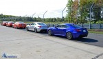 Behavior of the all-new 2015 Lexus RC F in its Sport + drive mode setting is dialed in for track use, as is the RC F – complete with exclusive oil and transmission coolers behind the front bumper’s side air inlets. Banging through each cog on the track of the 8-speed automatic transmission put the driver at a position of full control, allowing you to rev-match each down-shift into redline of the previous gear. This was a nice takeaway of the RC F considering how the outgoing Lexus IS F never really allowed much redline rpm needle burying during its lazy downshifts. The RC F will limit downshifts into 1st gear as to not allow the redline threshold to be reached within a couple-thousand rpms. Basically, don’t expect to downshift into 1st gear unless your 2nd gear rpm is pretty low. This only spoils the fun on those tight low-speed turns. Otherwise, fun is in full submission around the track in the RC F with the Sport + gauge cluster configuration, derived mostly from the LFA supercar’s color LCD readout, is not only colorful but functions well with its flashy schemes leading up to the optimal shift point notification before fuel cut in each gear. Peak power of the RC F surges at 7,100 rpm carrying through to 7,300 rpm, giving you some leeway on each shift.