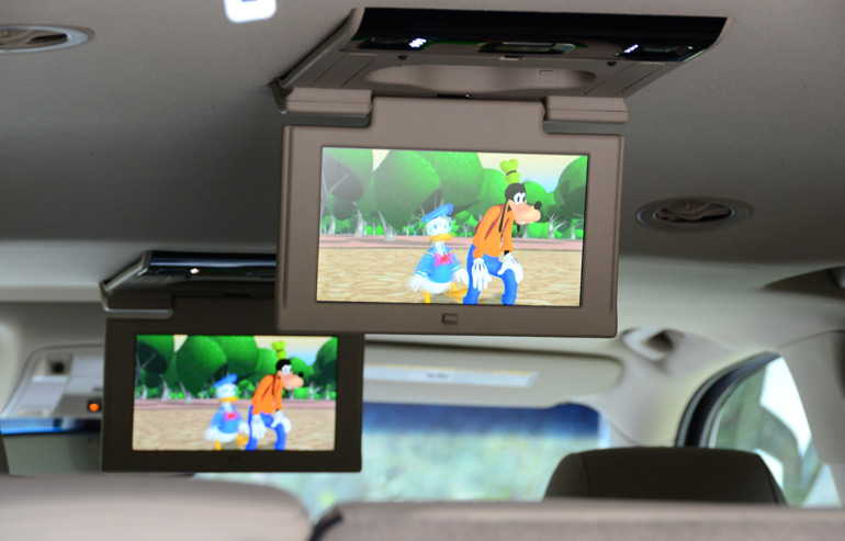 Rear passengers benefit from 2nd row climate controls, roof vents and the rear-seat entertainment system with two LCD screens as part of my test vehicle’s Premium trim level. To access additional cargo space outside of the impressive 39.3 cubic feet with all seats in place, the 3rd row seats fold flat into the floor at the touch of a button while the 2nd row flips forward through another set of power buttons. With the seats folded, cargo space vastly opens up to over 120 cubic feet, something I took advantage of to pick up planks of tile and hard-wood flooring for an over-due home project I have been planning.