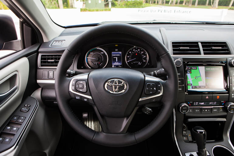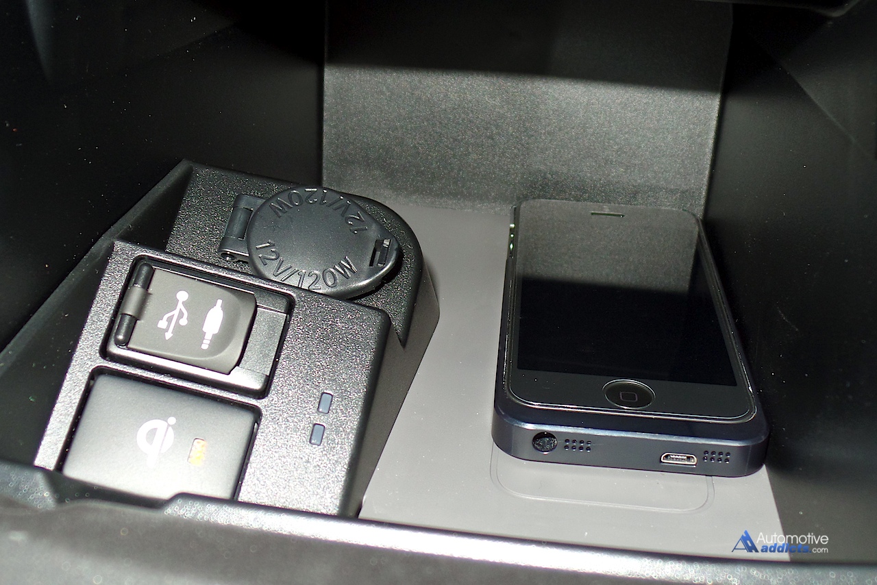 At the highlight of the new 2015 Camry’s tech is the availability of LED headlights (LED daytime running lights standard on XSE, XLE trims) in all trims except hybrid models, and as part of an available technology package you get lane departure alert, pre-collision system, adaptive cruise control and automatic high beams. The available Entune Premium JBL audio system comes as part of a package including GPS Navigation and App Suite. Moreover, a wireless cell phone charging station is available for charging up Qi-compatible phones. Having an iPhone I was a bit curious about the feature, but on my trip Toyota cleverly provided the proper iPhone accessory – much like an iPhone case – to wirelessly charge iPhones. Smart!