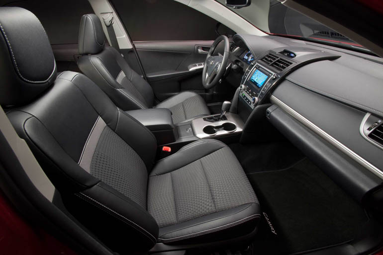 The 2014 Toyota Camry in the SE trim adds a bit of sporty styling but retains the totality of its subdued attitude on the road and in terms of its cabin. Inside of the 2014 Toyota Camry is a familiar cabin that serves more as a basis for adding on options and trim packages. This basis is also something that is a foundational attribute in the line of Toyota vehicles. All of the controls are minimalistic, never confusing.