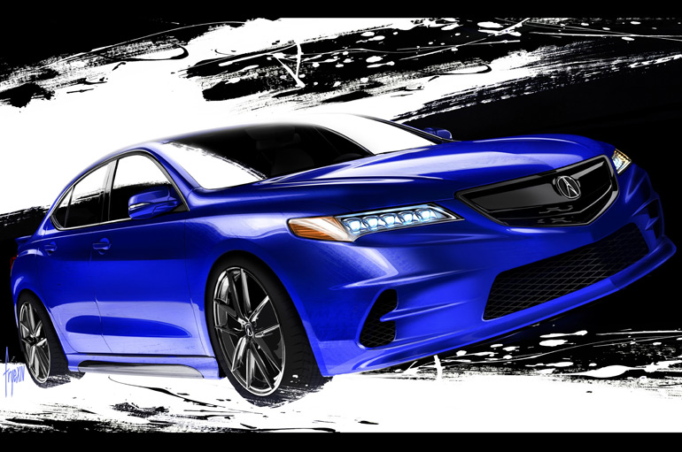 With the help of Galpin Custom Car Works and Acura Design Studio, this one-of-a-kind Acura TLX is a stunner with true form and function. The inspiration of this vehicle comes from the Acura TLX GT racecar. The Acura brand color, Andaro Blue, stands out as a crowd pleaser. The addition of several modifications, including its ADV5.0 M.V2 SL custom wheels wrapped in Pirelli 245/40/19 P Zero Tires, custom exhaust outlets, RSR Sport SI Series fully adjustable coilovers with 36-way dampening adjustment, Wilwood Superlite 6-piston brakes on slotted 14-inch rotors up front and 4-piston calipers on 14-inch slotted rotors out back, all make this TLX a show stopper.