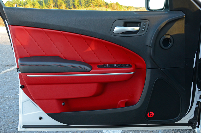 Out back the newly styled taillight assembly has a smoother LED light flow with another set of LEDs for brake lights and signals. Part of an optional Customer Preferred Package, my 2015 Charger R/T includes sport suspension, 3-mode stability control, high speed engine controller, performance pages, 20-inch wheels, 8-way power ventilated/heated nappa leather w/ alcantara sport seats, power adjustable pedals, power-tilt/telescoping steering wheel, park-sense system, and the 3.07 ratio rear axel. Other tech goodies added onto my test vehicle include the decently-sounding 552-watt 10-speaker and subwoofer Beats Audio system, a technology Group package with adaptive cruise control, lane sense w/lane keep assist, blindspot alert, memory driver’s seat, rain sensing wipers, and auto highbeam headlights. Topping off the options list is a navigation / rear backup camera group package, pitch black roof option and a large power sunroof.