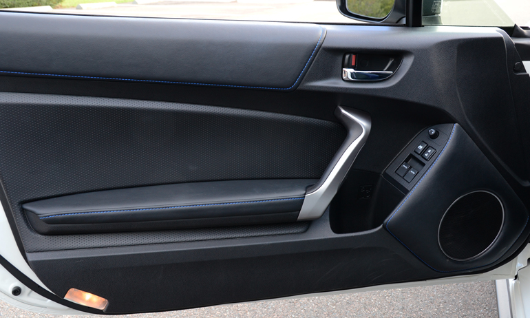 Continuing the individual character of the Series.Blue Edition package, the BRZ gets 17-inch STi black-finished alloy wheels wrapped in summer Michelin Primacy HP tires. The interior is coupled off with the exceptionally supportive and super-sporty heated seats with blue leather bolsters, alcantara inserts and BRZ embroidering. The dashboard gets carbon fiber-patterned trim while you will find nicely-accented blue stitching throughout the door trim, front/rear seats, and the boot on the shifter and E-brake.