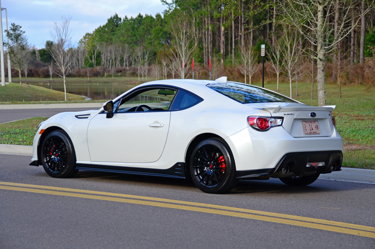 The new 2015 Subaru BRZ Series.Blue, only available in two colors, WR Blue Pearl or my test vehicle’s Crystal White Pearl paint, adds a few STi-inspired bits to the feature set list, bringing a new exclusive sporty character to the small sports coupe. The Series.Blue package adds unique STi-logoed front, side and rear under-spoilers – basically a nicely done and eye-pleasing body kit. Apart from just looks, the kit and its specific underbody panels reduce the coefficient of drag (Cd) from 0.28 to 0.27, making the low-mass BRZ even slipperier through the wind.