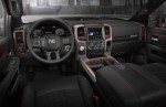 Continuing around to the rearview is a bold new “RAM” stamped tailgate with blacked-out lettering. The “Rebel” and “4X4” badge emphasize the truck’s uniqueness. The rear bumper is also treated with durable black powder coating with flared cutouts around dual chrome-tipped exhausts. Tail lamps incorporate black bezels to match forward lighting.