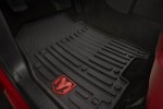Deep all-weather rubber floor mats with contrasting Radar Red Ram’s head help contain dirt, snow and debris.